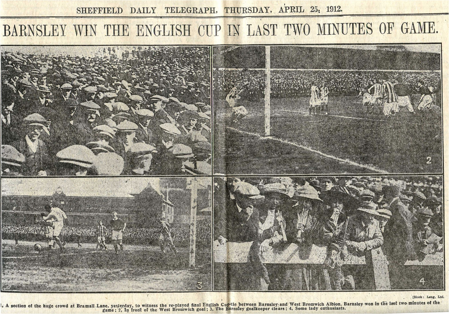 The following day the Sheffield Daily Telegraph (25th April 1912) carried a series of photos of the match which are reproduced below.