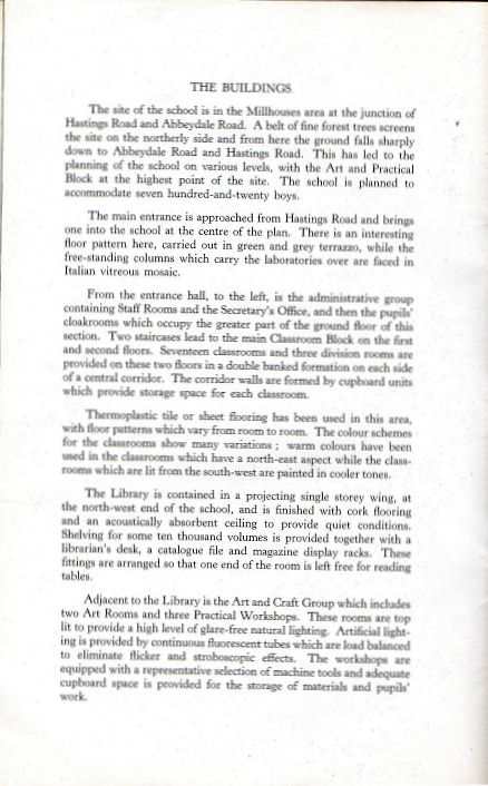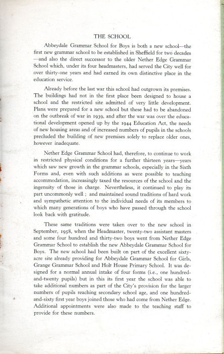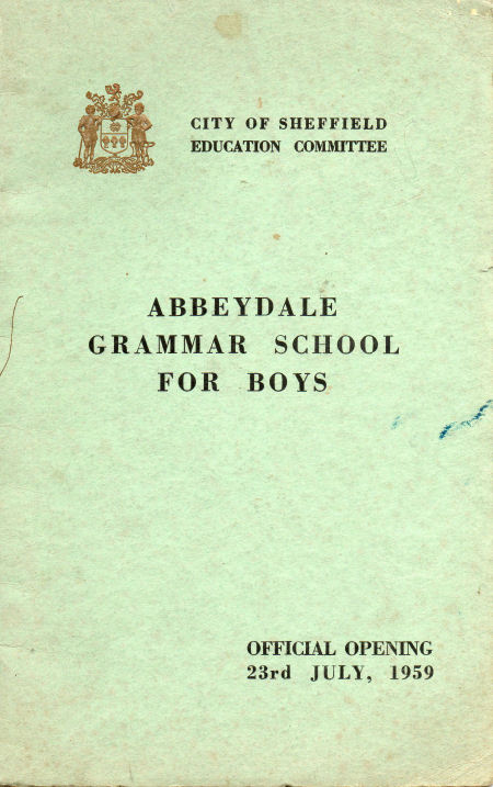 One of the first articles I posted to this site was one that related to the time I spent at Abbeydale Boys Grammar School in the late 1960's. Over the years a few "old boys" have contacted me with their recollections of the school. In May 2010 one of them contacted me again and said that he had in his possession a copy of a brochure that was published to mark the official opening of the school in July 1959. He kindly forwarded me a copy of the brochure which I have reproduced.