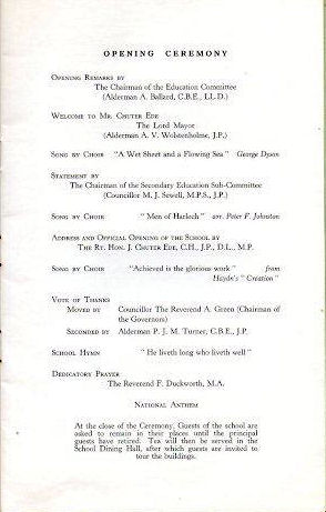 The Opening of Abbeydale Boys Grammar School - Sheffield 23rd July 1959