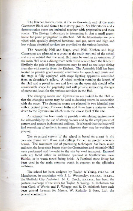 It is also rather fitting that I came into possession of this information. As I predicted many years ago, the school (now Abbeydale Grange) is to be closed down this summer (July 2010) as it is deemed by the local authority and national government to be a failing school . The proverbial writing has been on the wall for many years - over sixty acres of prime residential building land in one of Sheffield's "leafy suburbs" was just too tempting for the perennially cash-strapped city council. And so in many ways the brochure has become a historical document that illustrates an era the like of which we will never see again. Three Cheers??