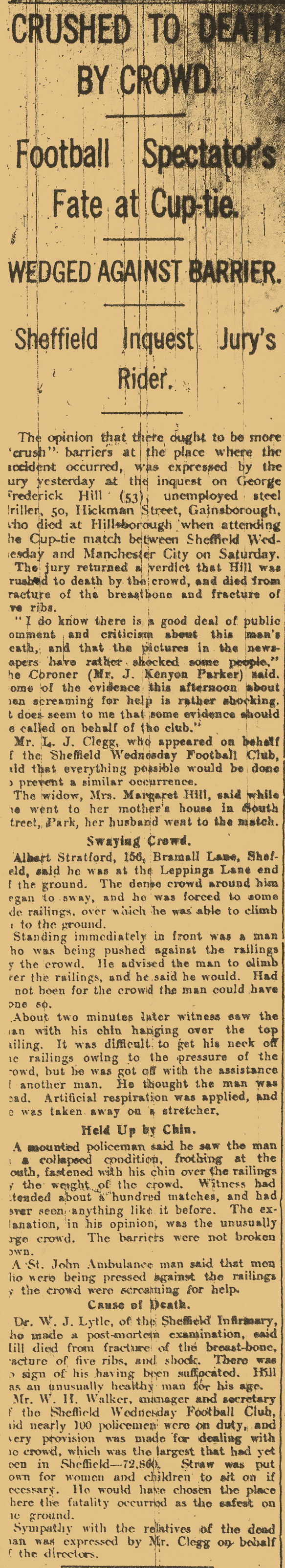 But the most tragic words are those uttered by Mr L. J. Clegg who represented Sheffield Wednesday FC at the Inquest. He stated