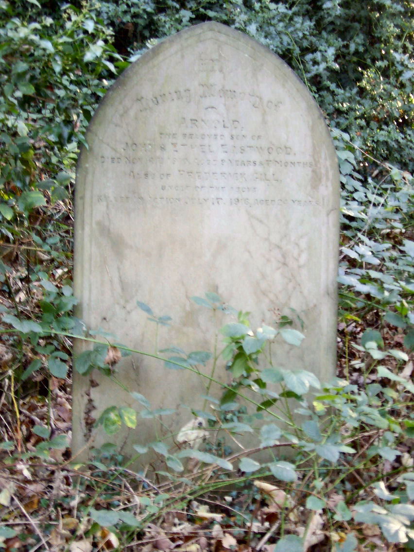 of John and Ethel's son, ARNOLD EASTWOOD. The epitaph reads