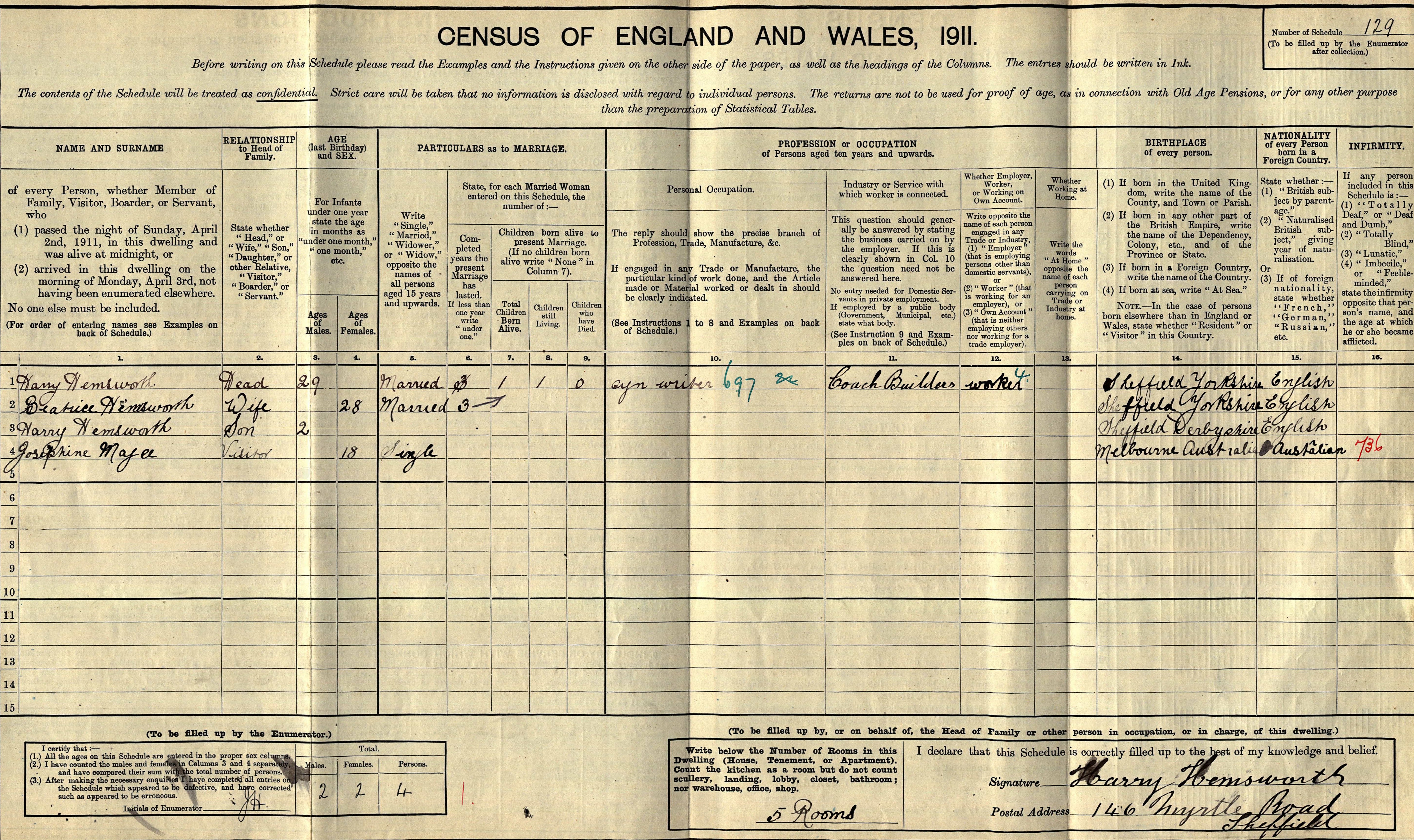 HARRY and BEATRICE had three children. From the information I have Harry and Beatrice lived at one time at 146 Myrtle Road, Heeley, Sheffield. This was confirmed when I found the school record for their children
