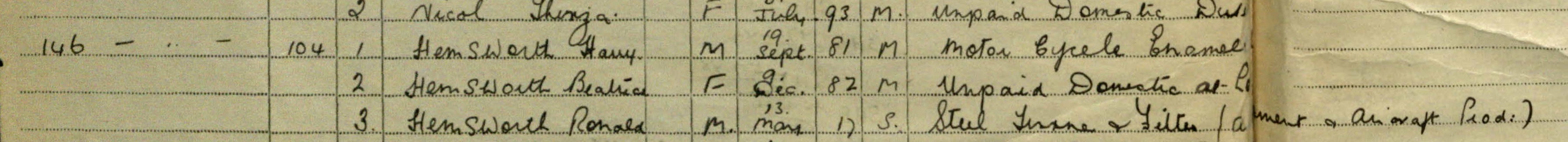 Death Record Harry Hemsworth Year of Registration 1982 Quarter of Registration Jul-Aug-Sep Registration District Sheffield Registration County Yorkshire Date of Birth 25 November 1908 Volume Number 3 Volume Page 1252