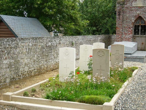 "Cavillon is a small village in the Department of the Somme, some 22 kilometres west of Amiens at the junction of the D156 and D121. The Cemetery is in the centre of the village, and the Commonwealth war graves are near to the entrance of the cemetery. Historical Information: Cavillon Communal Cemetery contains two Commonwealth burials of the First World War and the graves of three Second World War airmen".