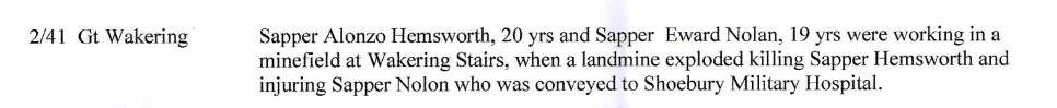 relative Alonzo Hemsworth being killed on 23/2/1941 and wonder if this was