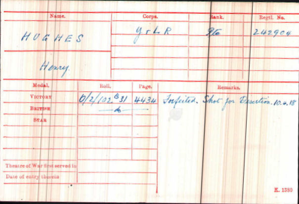 This was the first execution that had taken place in the Division but Henry was the third person from Sheffield to have been executed. Henry was conscripted into the Army and was just one of 306 British soldiers who were executed during the First World War. The Commonwealth War Graves Commission gives the following information with regard to Henry Hughes