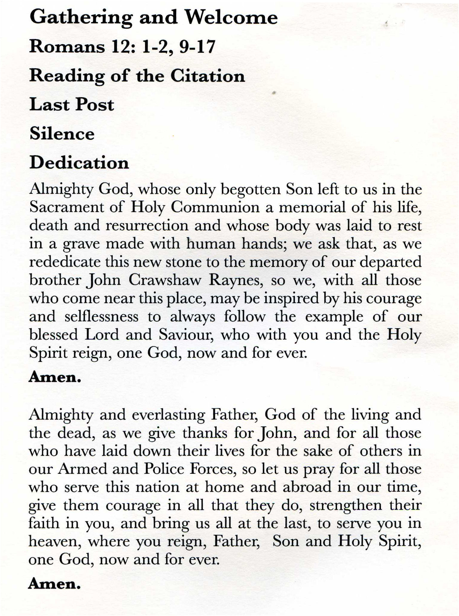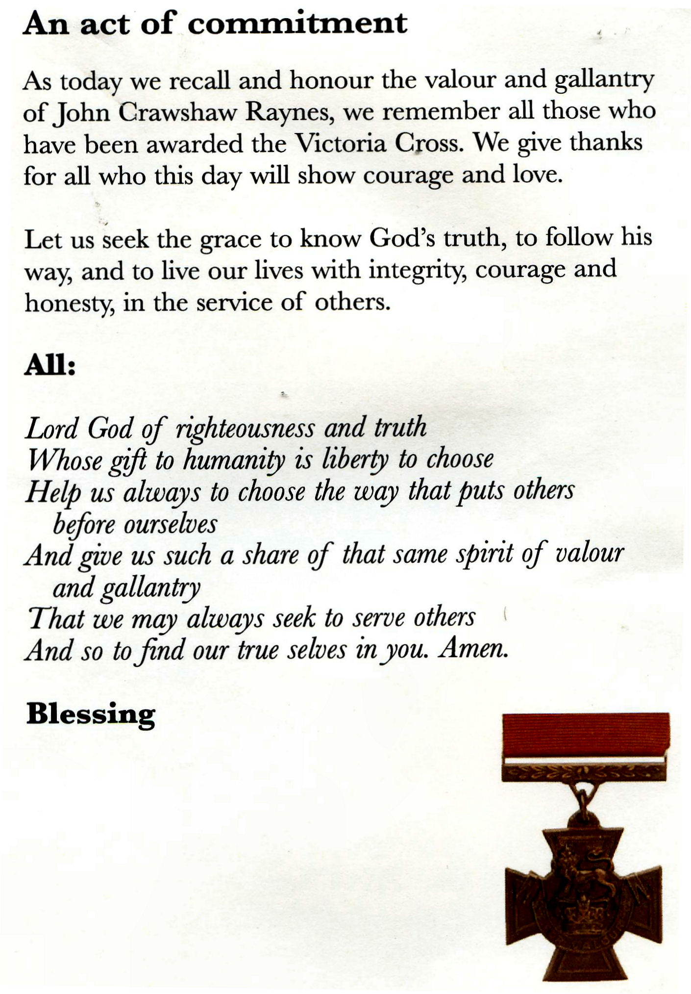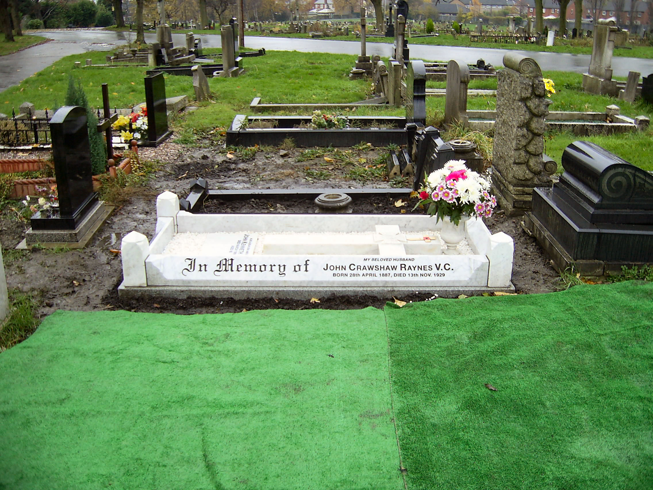 At this funeral the coffin was taken on a Royal Artillery gun-carriage followed by Captain W E Gage, chairman of the Leeds 'Old Contemptibles', who carried Sgt Major Raynes' medals, which included the VC, 1914-15 Star, General Service Medal and Victory Medal.."