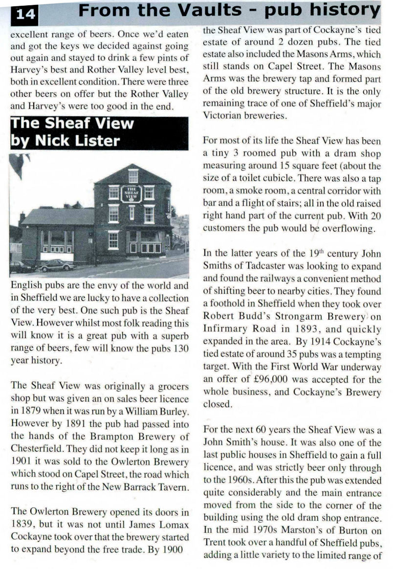 9. From Beer Matters - April 2006 (CAMRA Publication) - a brief history of The Sheaf View
