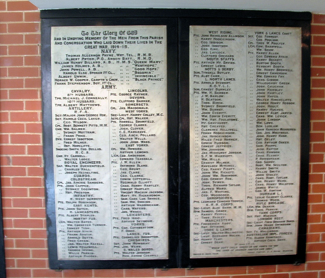 George appears on the Roll of Honour in St Bartholomews Church, Primrose View, Langsett Road, Sheffield