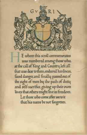 Those that lost members of their family in the war also received a scroll. Sadly I do not know what happened to George's but I would like to think that it hangs on a wall somewhere, and is viewed with both pride and admiration by his descendents.