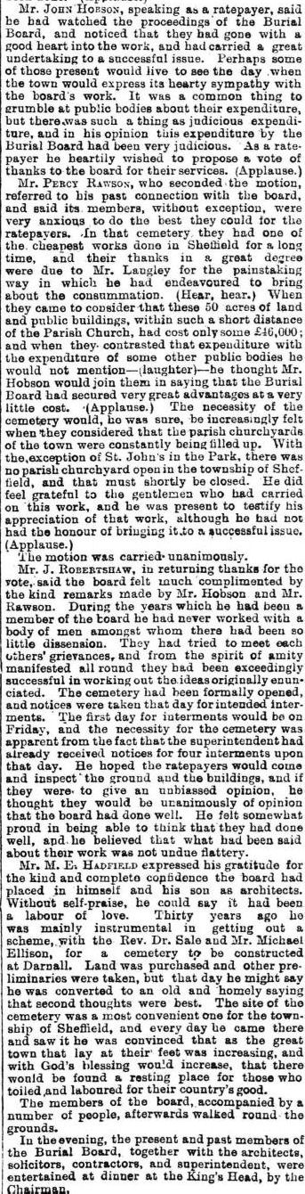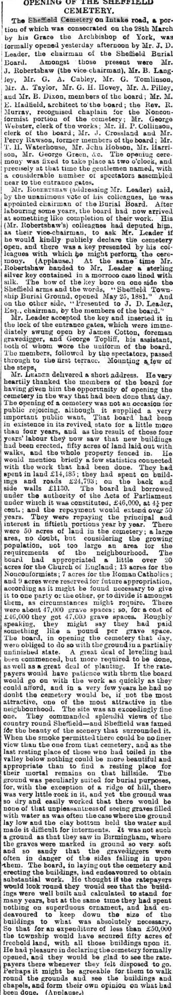 Nearly four years later, The Sheffield and Rotherham Independent dated 26th May 1881 gave a an excellent account of the formal opening of the Cemetery