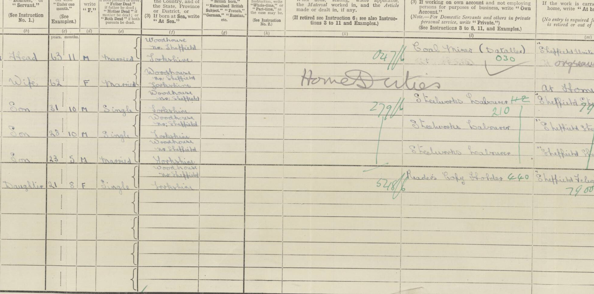 Lorraine Lax Son Male 1898 23 Woodhouse, Yorkshire, England - Steel Works Labourer