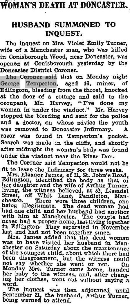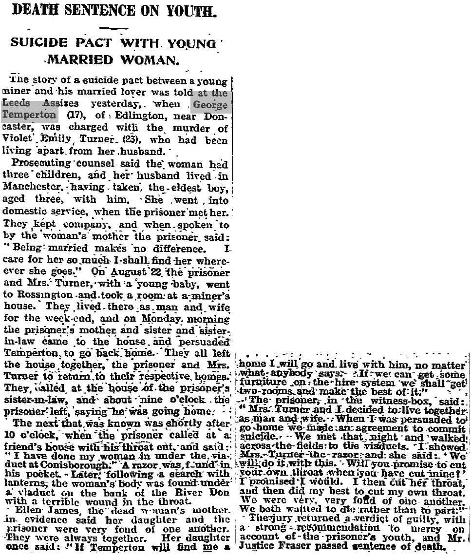 But when I checked the records of UK executions carried out in 1926, there was no mention made of George Temperton. This could only mean that he had been reprieved by the Home Secretary. In the light of this I found a report in the Manchester Guardian dated 27th August 1925 that outlined the murder that George Temperton committed