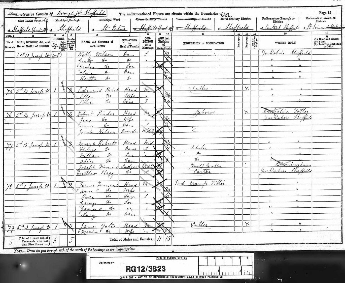 But before the year was out, the father JAMES was dead. This is his burial record from Sheffield's Burngreave Cemetery