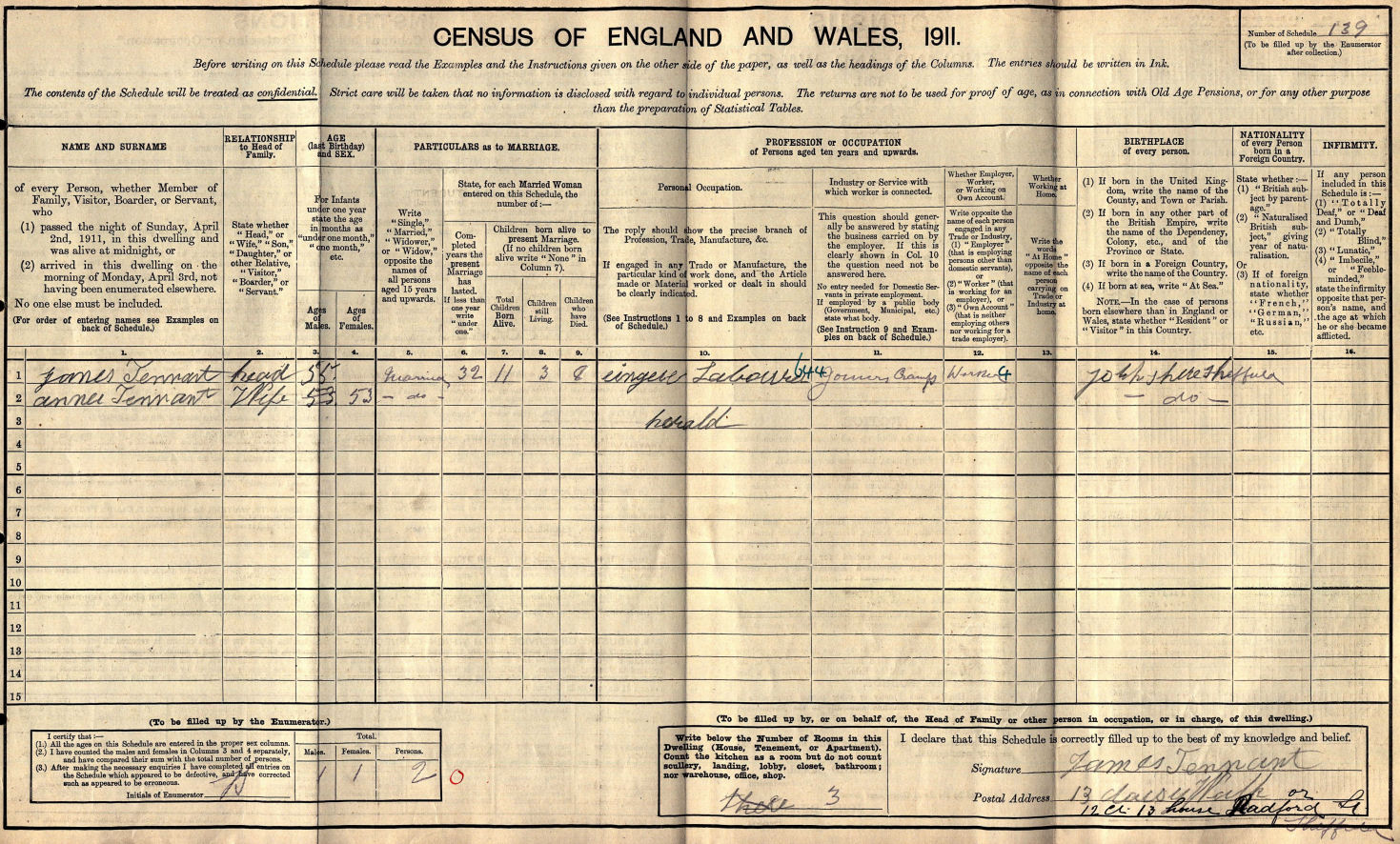 As for ANNIE TENNANT it is a bit of a mystery. I cannot find her death registered in the years following 1911. However there is a marriage registered in Sheffield in the March quarter of 1920