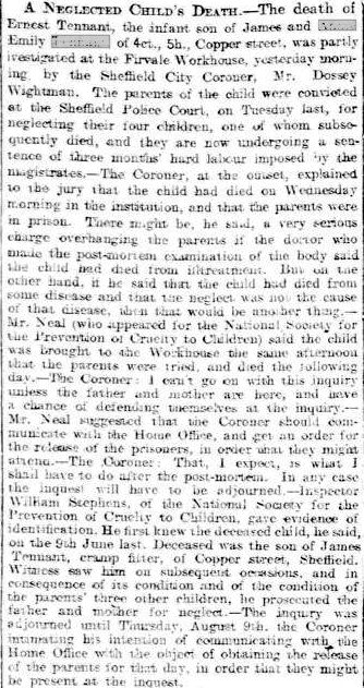 Wightman. The parents of the child were convicted at the Sheffield Police Court,