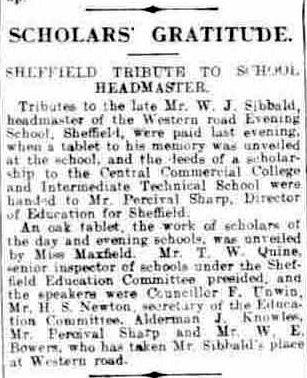 William James Sibbald (1874 - 1920) - Headmaster of Western Road Evening School, Sheffield.