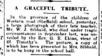 Earlier that year this "graceful tribute" was made and hung in the school hall. The report is from the Sheffield Daily Independent dated 4th March 1921