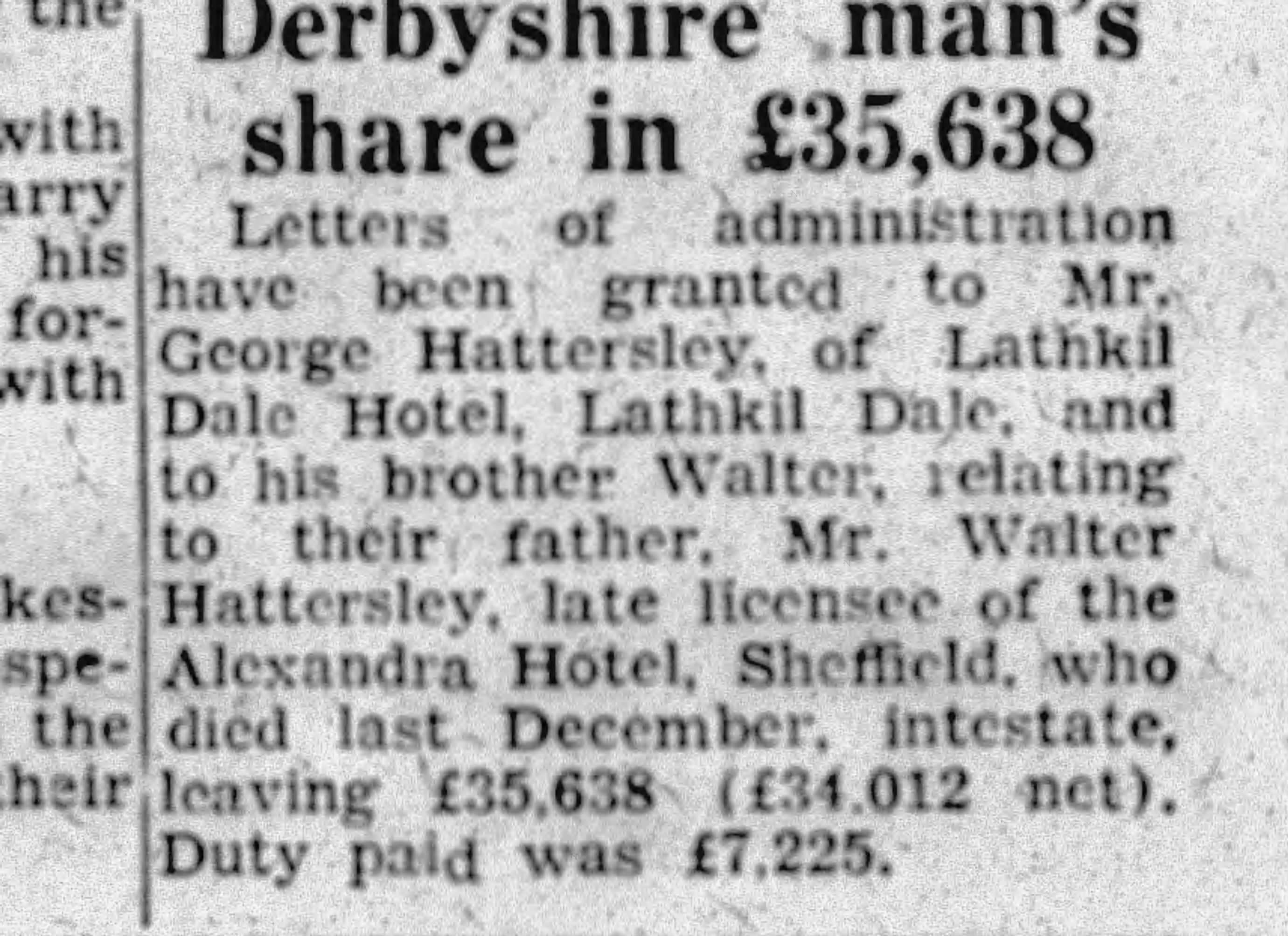 The assertion that Walter Hattersley was a wealthy man can be seen in his probate record that was published in the Evening Telegraph dated 24th August 1952. At today's prices that would be £720,000GBP