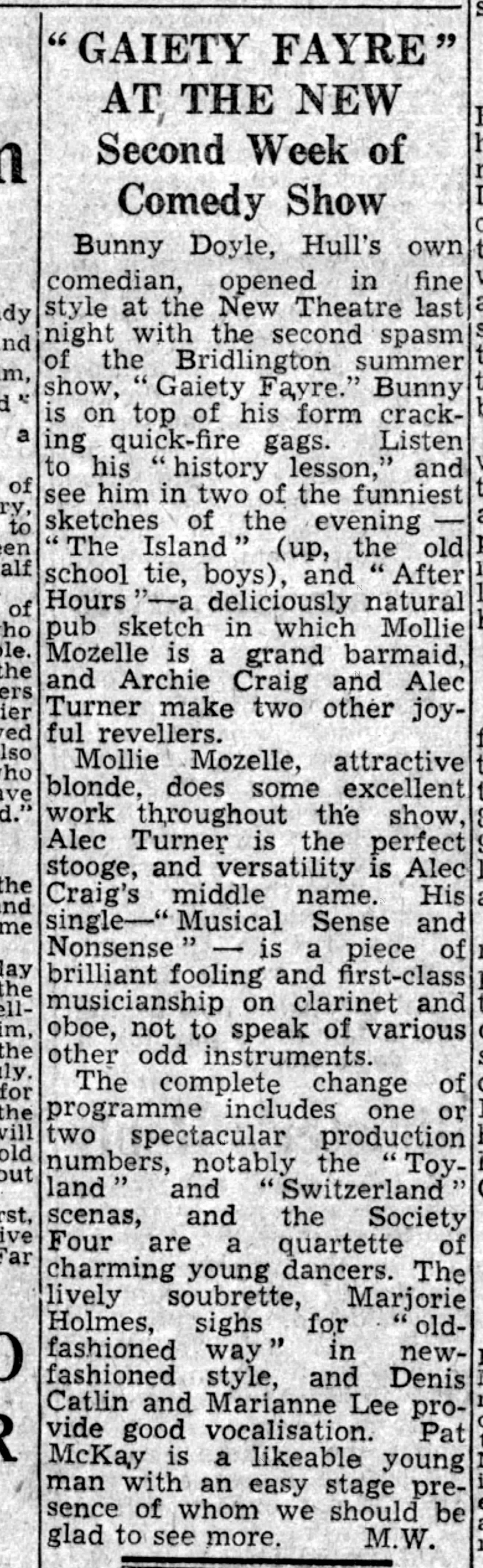 sixteen year relationship with a married comedian known as Bunny (Bernard) Doyle, a Yorkshireman, a veteran of the First World War and a recipient of the Victoria Cross, who’s previous marriage had broken down but divorce laws of course were different back then. Bunny later died in 1954, five years after Molly disappeared.