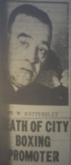 Born in Sheffield in 1897, Walter Hattersley was landlord of the Alexandra Hotel, Castlegate, and proprietor of Westfield Motors, West Street. A former miner who had been involved in boxing for over 30 years, Walter Hattersley was a director of the Central Area Boxing Board of Control, which controlled boxing in the north of England. He died in December 1952, aged 55, at the Royal Hospital after being taken ill at his hotel. His death was described in the local press as ‘sudden’ and as the result of ‘a seizure’.