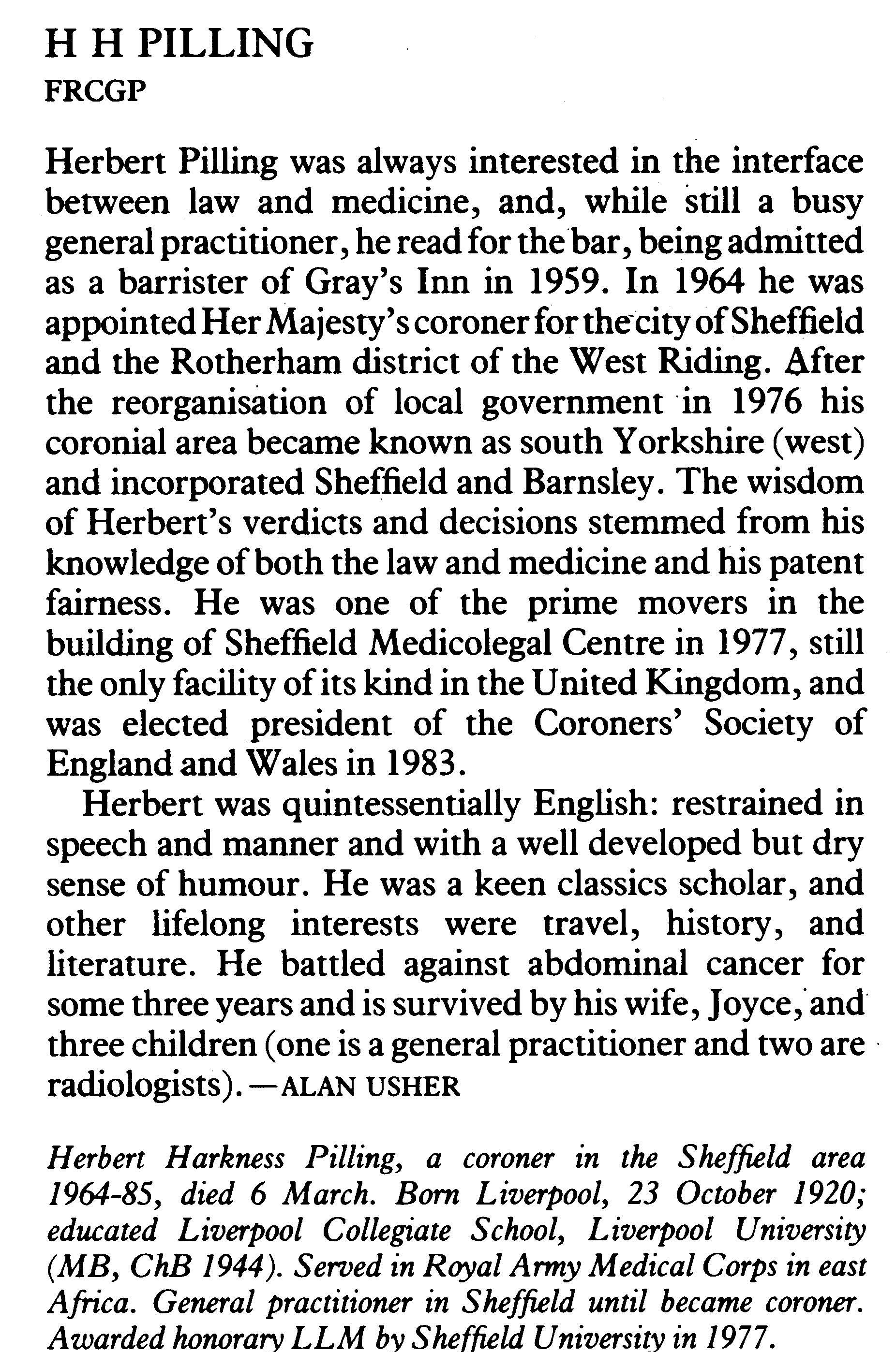 Dr Pilling's Obituary