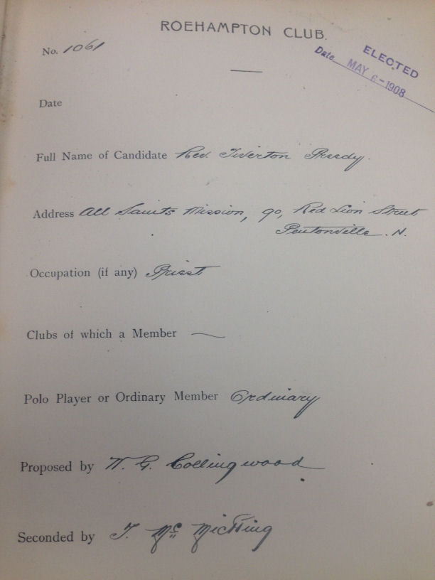 " ROEHAMPTON CLUB CLERGYMAN - FOUNDER OF BARNSLEY
