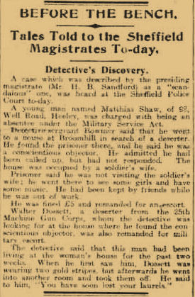 There is a newspaper report from the Yorkshire Telegraph and Star dated 3rd February 1917 which shows Walter in the local magistrates court as a deserter