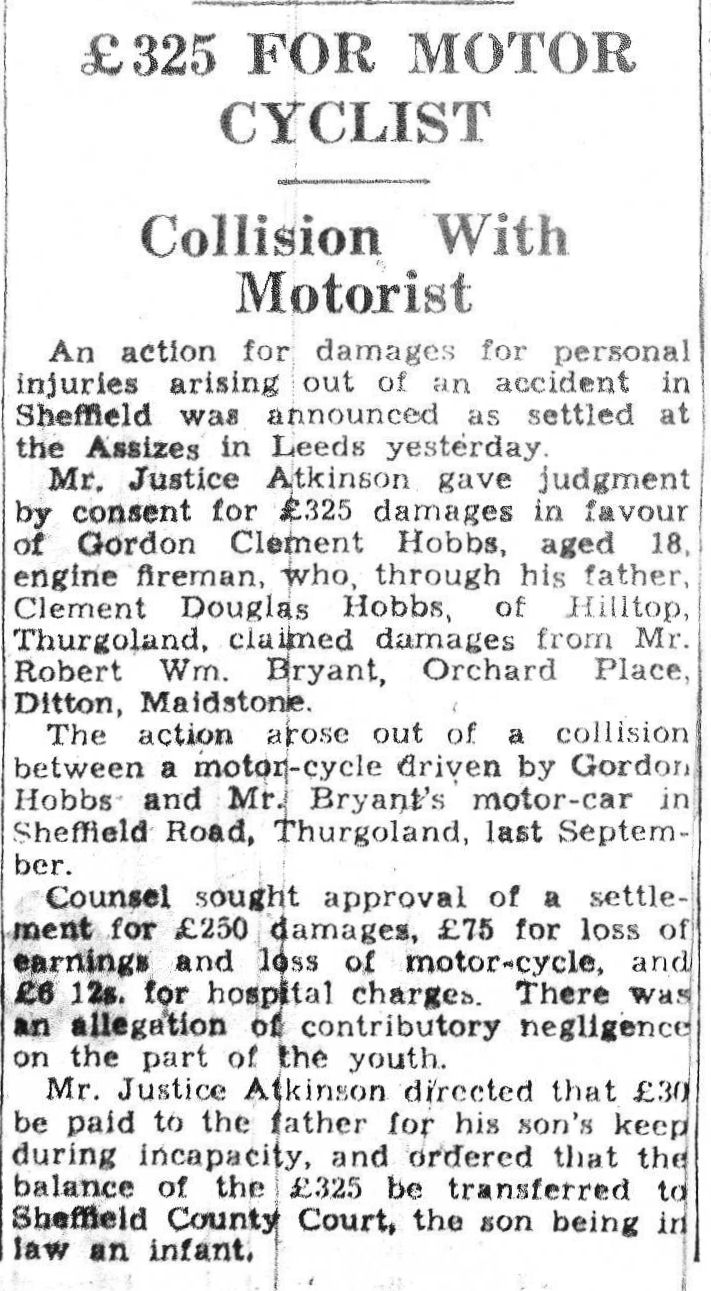 In December 2014 a reader of this page passed on to me a cutting from the Yorkshire Post dated 7th July 1939. It explained why my dad lost his teeth at an early age and also his arthritic hip