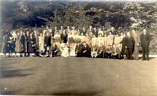 The photograph was taken at the Reception that was held after the wedding of my parents on 29th September 1951. The location was the grounds of the Brincliffe Oaks Hotel Sheffield and this particular photograph is of my parents together with all the relatives from my mothers side (Hemsworth) of the family. The persons are numbered from left to right starting with