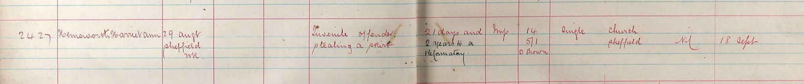 As for HARRIET HEMSWORTH life seems to have gone downhill - he mother was admitted to an asylum in 1894 but the previous year 1893 Harriet was brought before the Sheffield magistrates for stealing a purse and sentenced for 21 days plus 2 years in a Reformatory for the offence