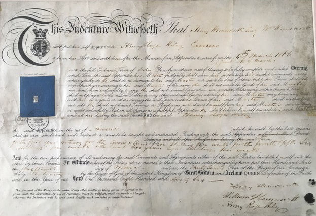 Henry's apprenticeship certificate is below - he followed his father WILLIAM into the tanning trade