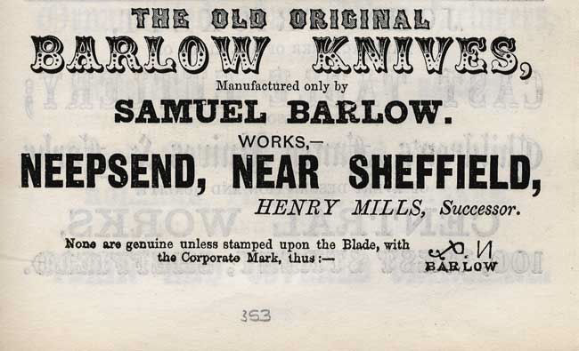 There is another viewpoint - Samuel Barlow a Spring Knife Cutler last will and testament bequeathed all his property to HENRY MILLS. Was this Henry's way of acknowledging his legacy?