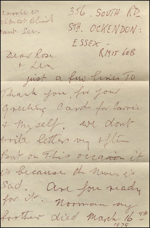 Featured below is the first page of a letter Charles sent to his sister in law Rose and his nephew Len informing them that his brother and Len's father Norman had died at the age of 85