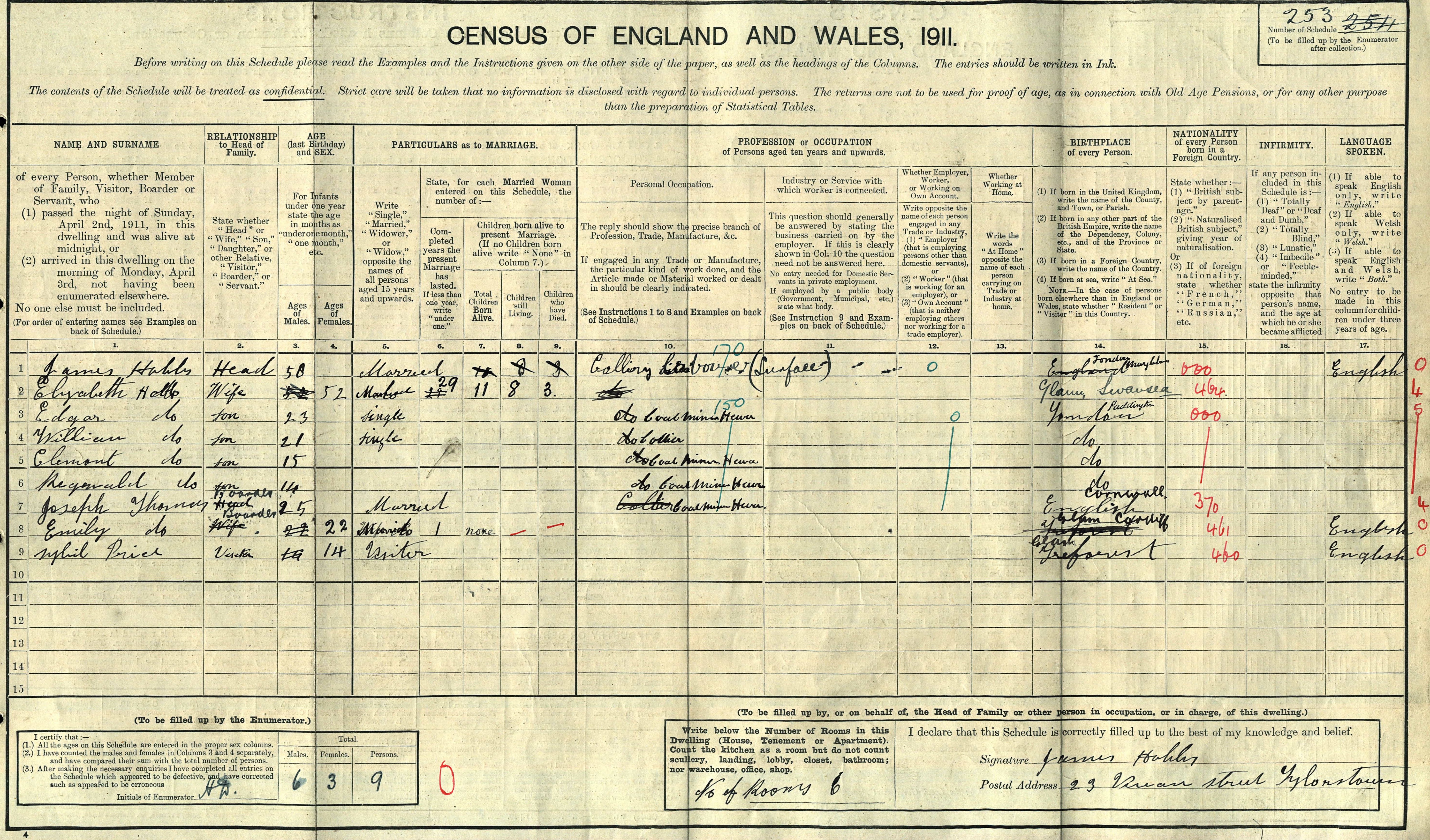 The 1911 Census has the family living in South Wales - the transcribers of the 1911 Census named the family HABBS not HOBBS