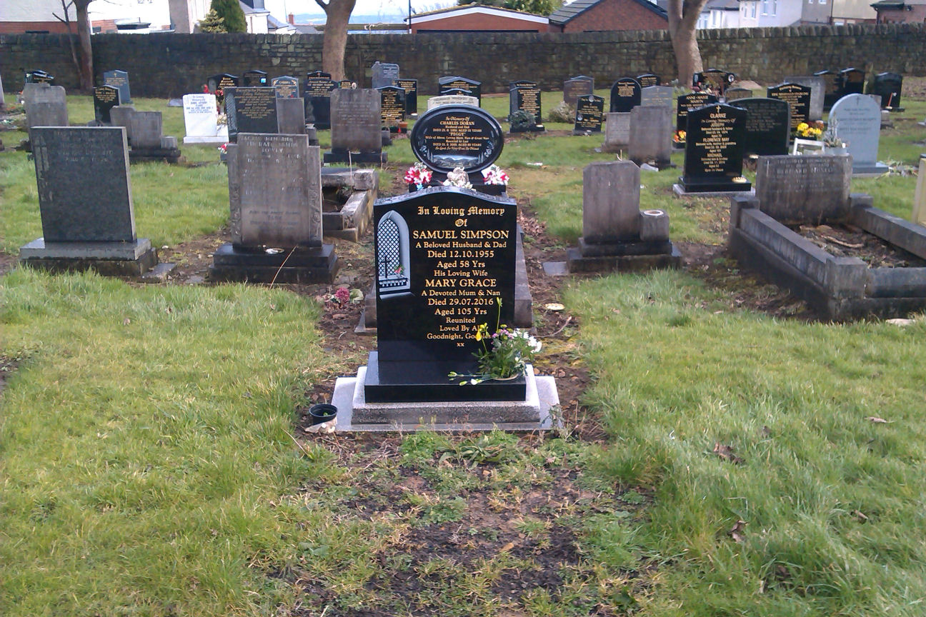In February 2018 I located Samuel's grave in the cemetery at Crookes, Sheffield. His wife Mary is reunited with him, having died on the 29th July 2016 at the remarkable age of 105!. To date, Mary is the longest living person in the family tree and at the time of her death was the oldest person in Sheffield.