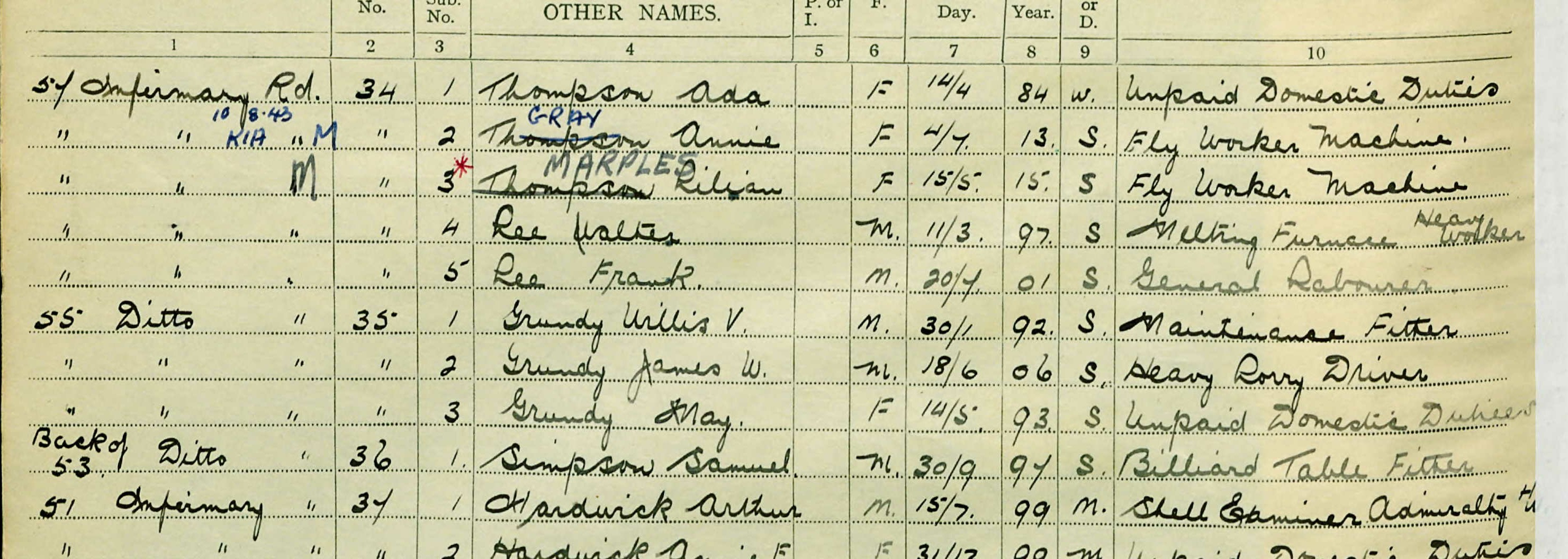 | Fred SIMPSON | 23 | Son - Widower | Billiard Marker | Sheffield Yorkshire |