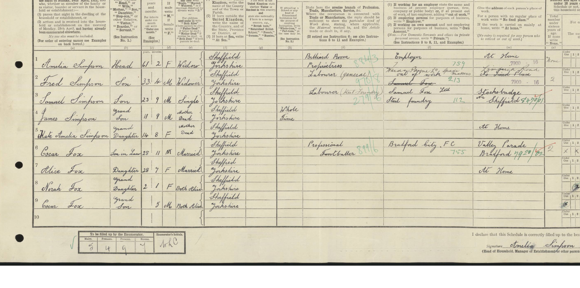 | Fred SIMPSON | 13 | Son | Sheffield Yorkshire | |