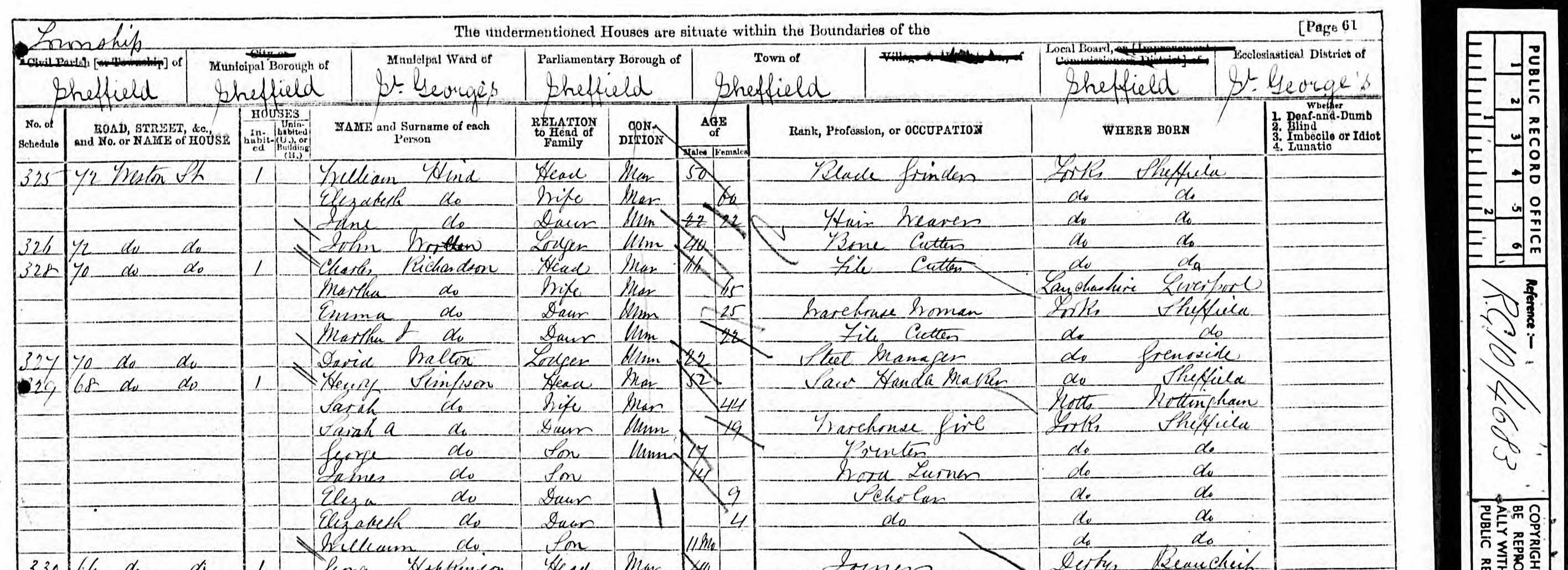 | Fred SIMPSON | 13 | Son | Sheffield Yorkshire | |