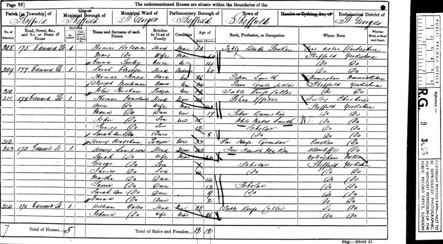 The first entry I can find for James is as a four year old boy living with his family at Edward Street in Sheffield in 1861
