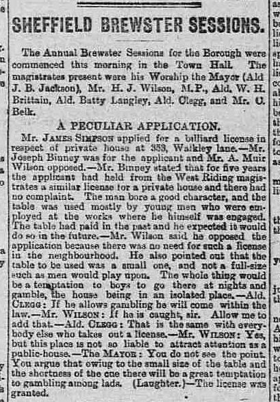 However there is a newspaper report from 1890 which gives an indication of their whereabouts. The Sheffield Daily Telegraph dated 28th August 1890 notes that James had applied for a billiard licence for a "private house" at 353 Walkley Lane in Sheffield and that he had already held a similar licence for a private house for five years. He was of good character and there were no complaints. To fill the reader in for the time being the works referred to in the report were the Burgon and Ball works that were situated at Malin Bridge in Sheffield. And it appears that James was also engaged there as an employee.