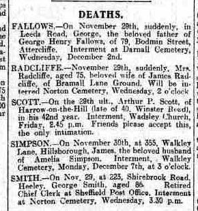 As for James and Amelia, they were both buried in St Mary's C of E Cemetery in Walkley, Sheffield. The burial registers give the following information
