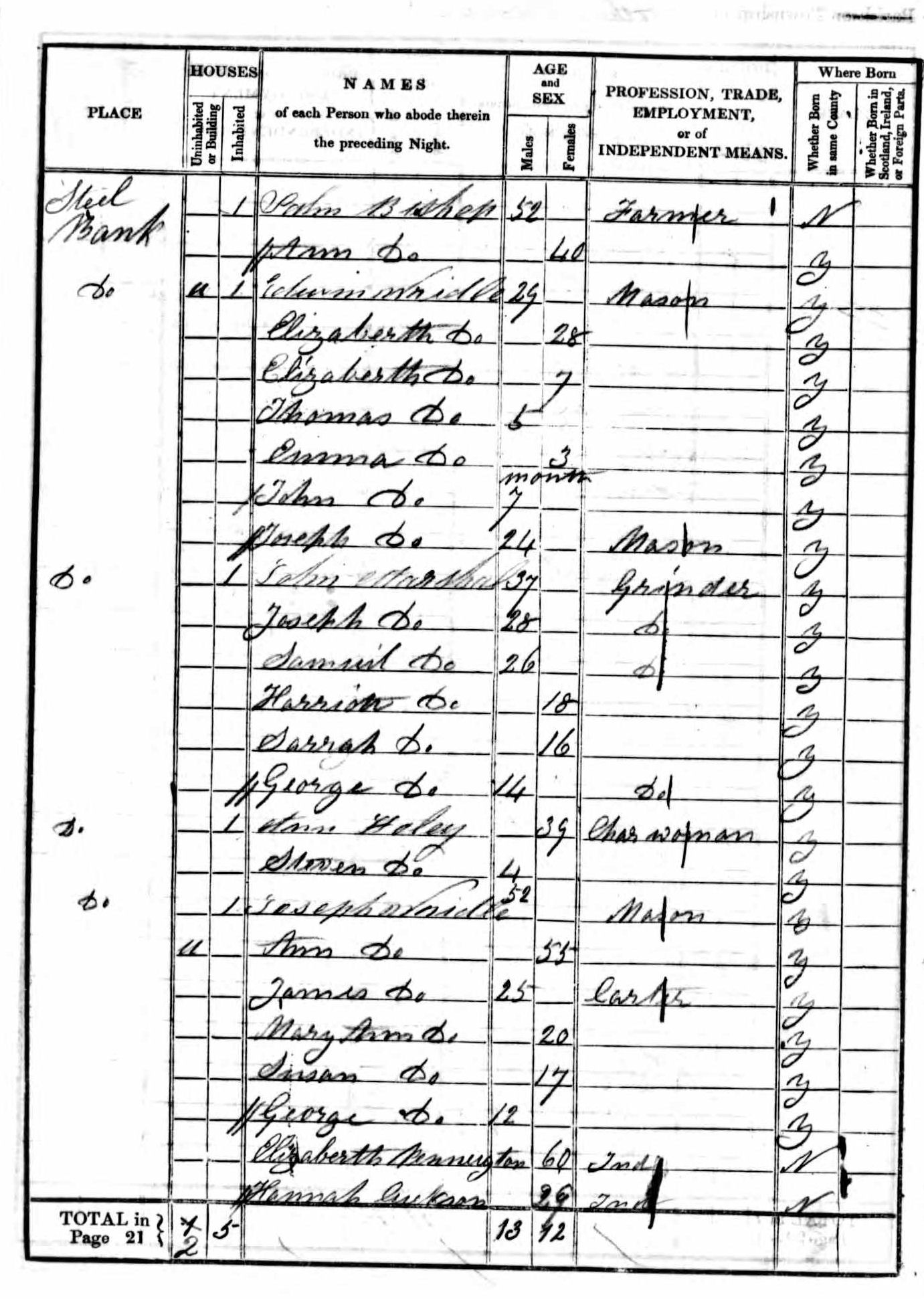 Based on this record I was able to establish that Joseph and Ann were living a year earlier in 1841. This is their Census entry