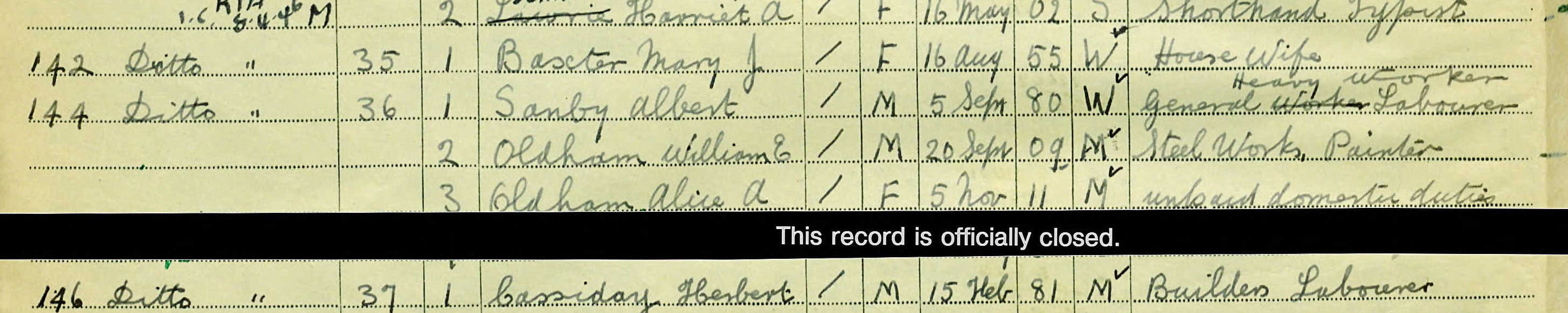 | SANBY | Beatrice (1884 - 1975) | 6 | Dau | Sheffield | Yorkshire | ||