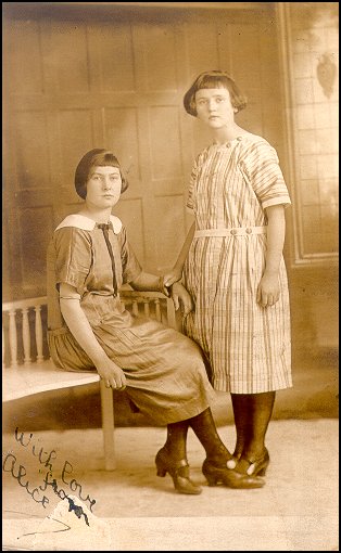 Their daughter ALICE who lived at 144 Bellhagg Road, Walkley with her parents, married a WILLIAM OLDHAM in 1937 (an entry in Kelly's Directory of Sheffield and Rotherham 1972 gives Alice's husbands name as EDWIN OLDHAM. They later moved to 65 Marchwood Road, Stannington, Sheffield. In the photograph taken below, the front is inscribed "with love from Alice" and on the reverse it states "to Aunt Rose with love"