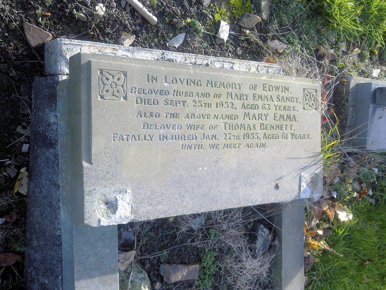 My great grandparents EDWIN AND MARY SANBY, are buried in St Mary's Cemetery. The inscription on the headstone reads