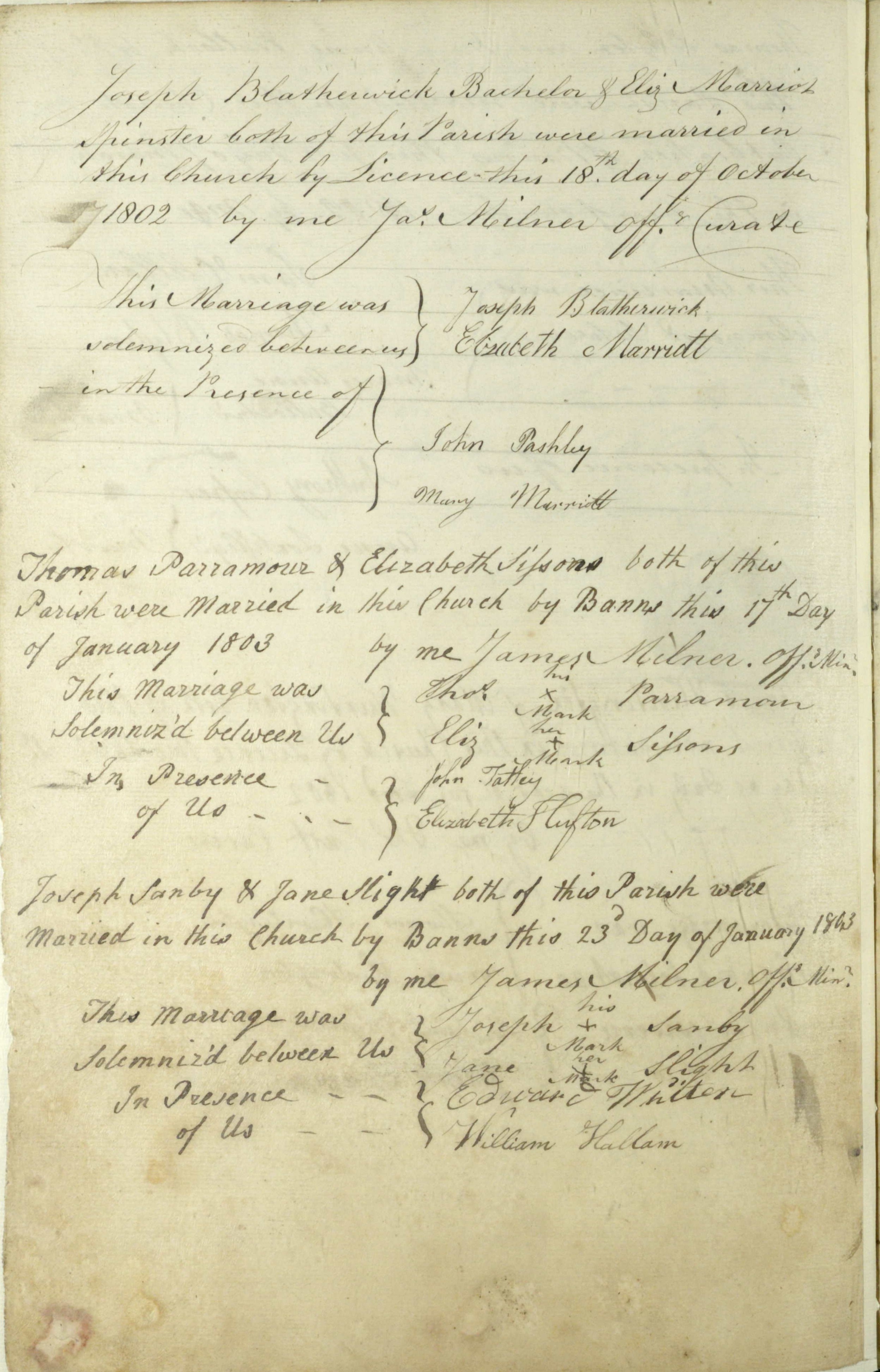 Incidentally JOSEPH and JANE were married on 23rd January 1803 in Mansfield Woodhouse, Nottingham, England. (Source Information IGI Batch No M059392 Dates 1626-1812 Source Call No 0503791). Jane's maiden name was SLIGHT. The Parish Church is named St Edmund, King and Martyr.