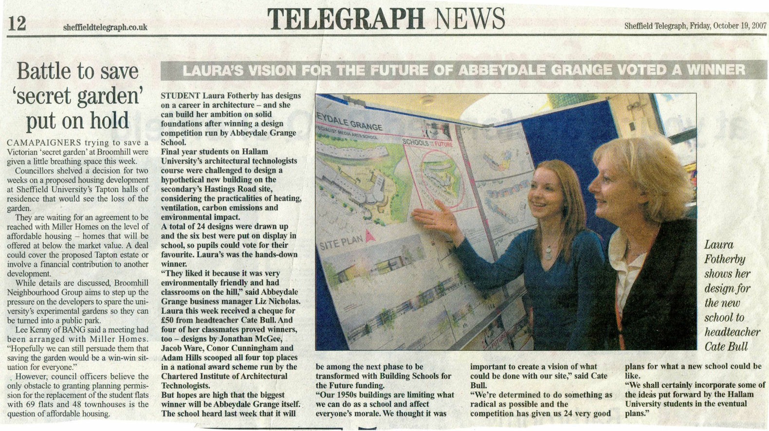 The Sheffield Telegraph dated Friday 19th October 2007 carried this article. It is clear from the narrative that both the staff and the students saw a future for the school. In fact the week before the school learned that it was included in the next phase in the Building Schools for the Future funding. It is also clear that in the opinion of the staff that the buildings were showing their age and limiting the potential of the school