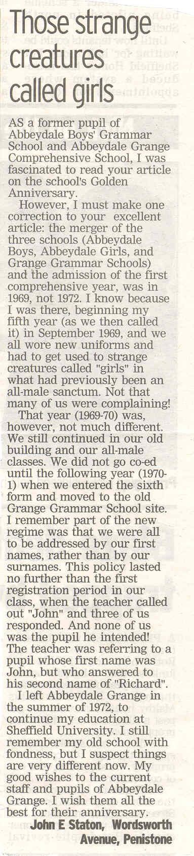 Abbeydale Grange is now a co-educational comprehensive with specialist